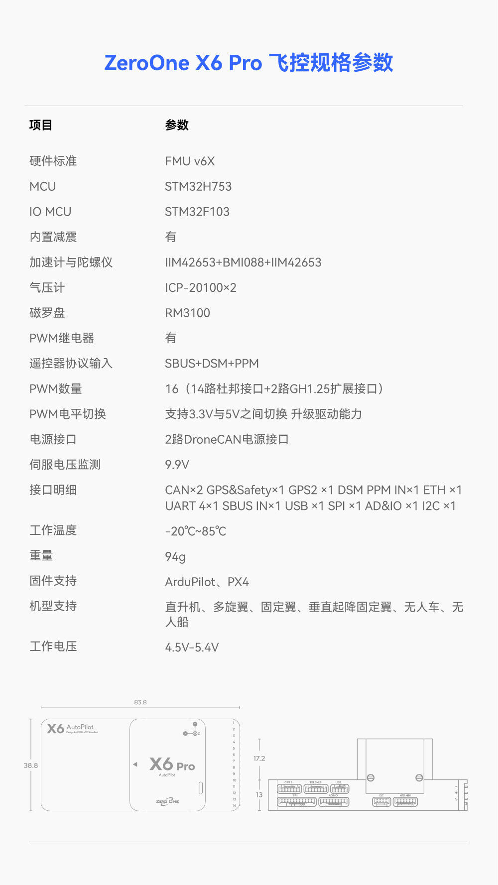 ZeroOne X6 Pro飞控 开源PX4 ArduPilot飞行控制器